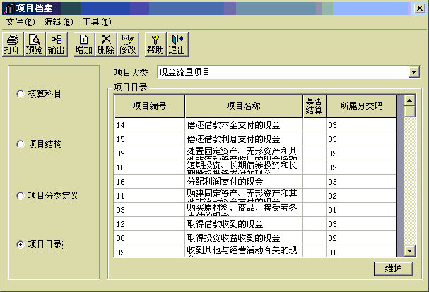 四、 項(xiàng)目目錄:項(xiàng)目目錄---維護(hù)---增加類(lèi)似于25、26的兩項(xiàng)目錄
