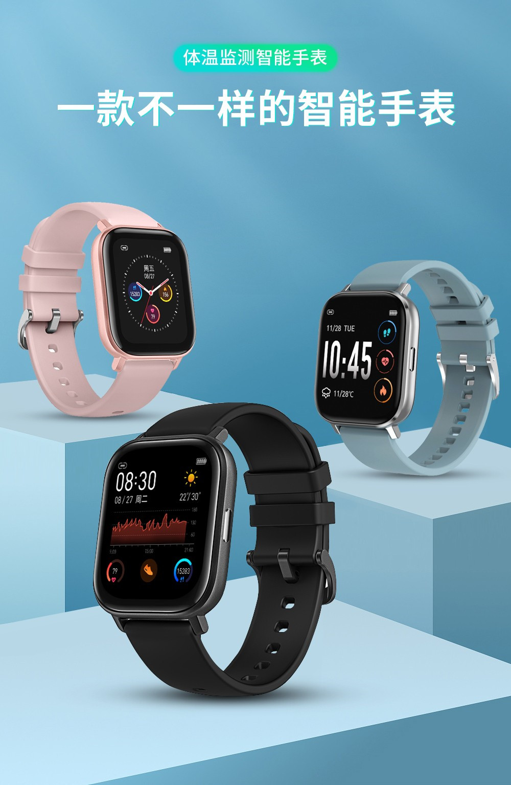 銳賽智能手表 RS-9112,通過高精熱導溫度傳感器以人工智能,大數(shù)據(jù)精密算法,60秒精準全天候測量用戶體溫,可同步APP數(shù)據(jù)。通過PPG光電可晝夜不休檢測你的心率,快速清楚的反應你運動時的身體狀態(tài)。